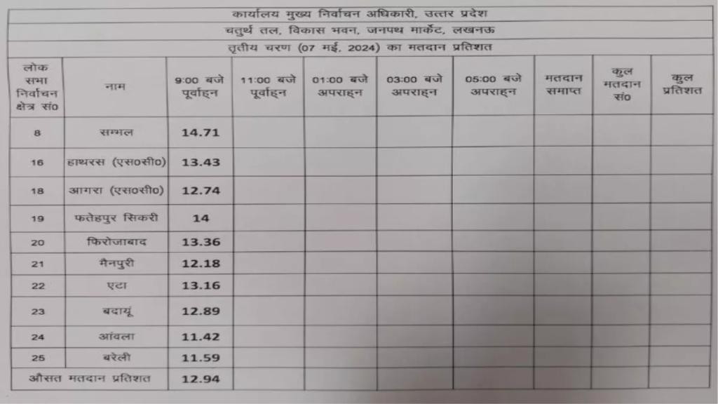 - बरेली – 11.59 प्रतिशत वोटिंग